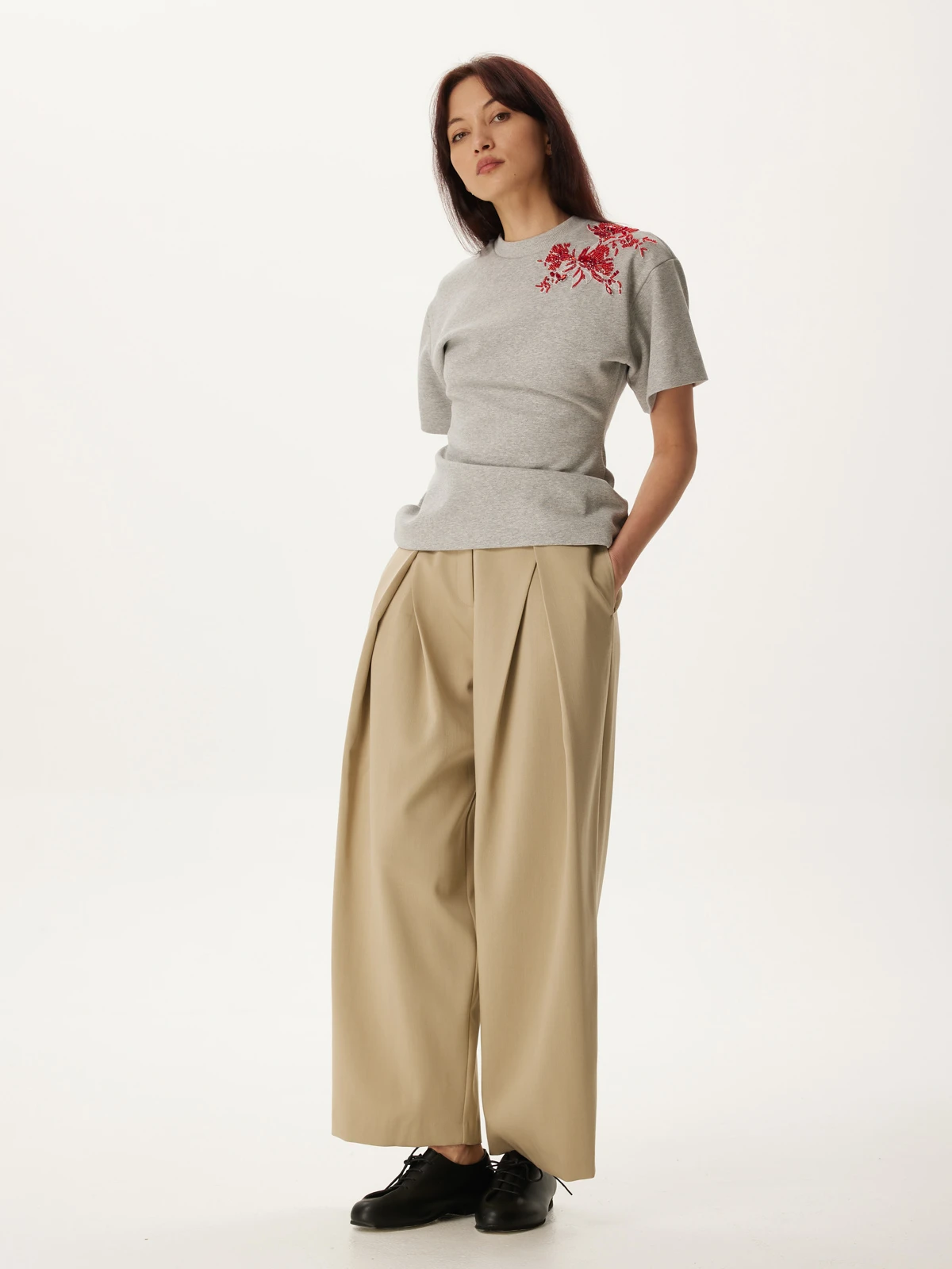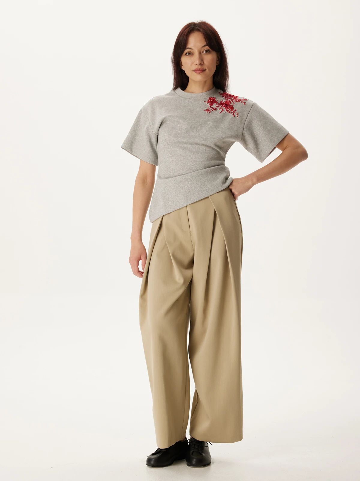 Классический и всегда актуальный бежевый оттенок брюк Аура придает образу элегантность и легкость. Он прекрасно сочетается с широкой палитрой цветов, позволяя создавать разнообразные стильные комбинации.