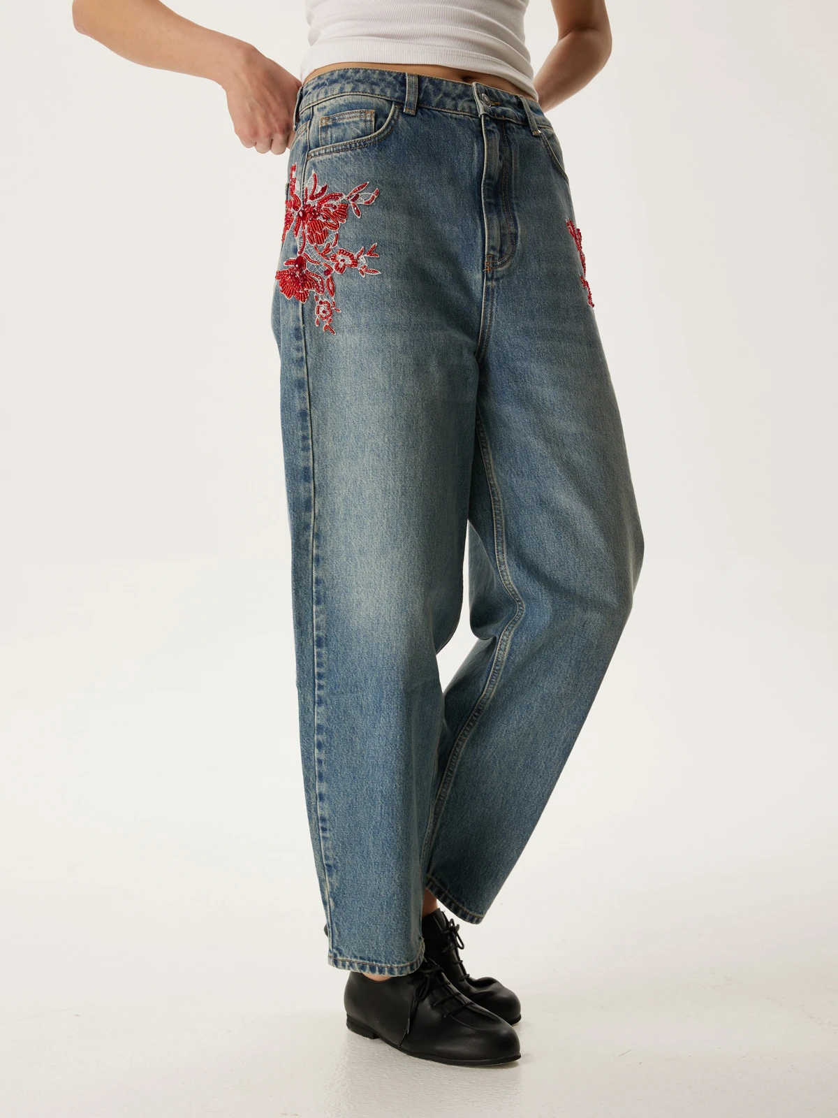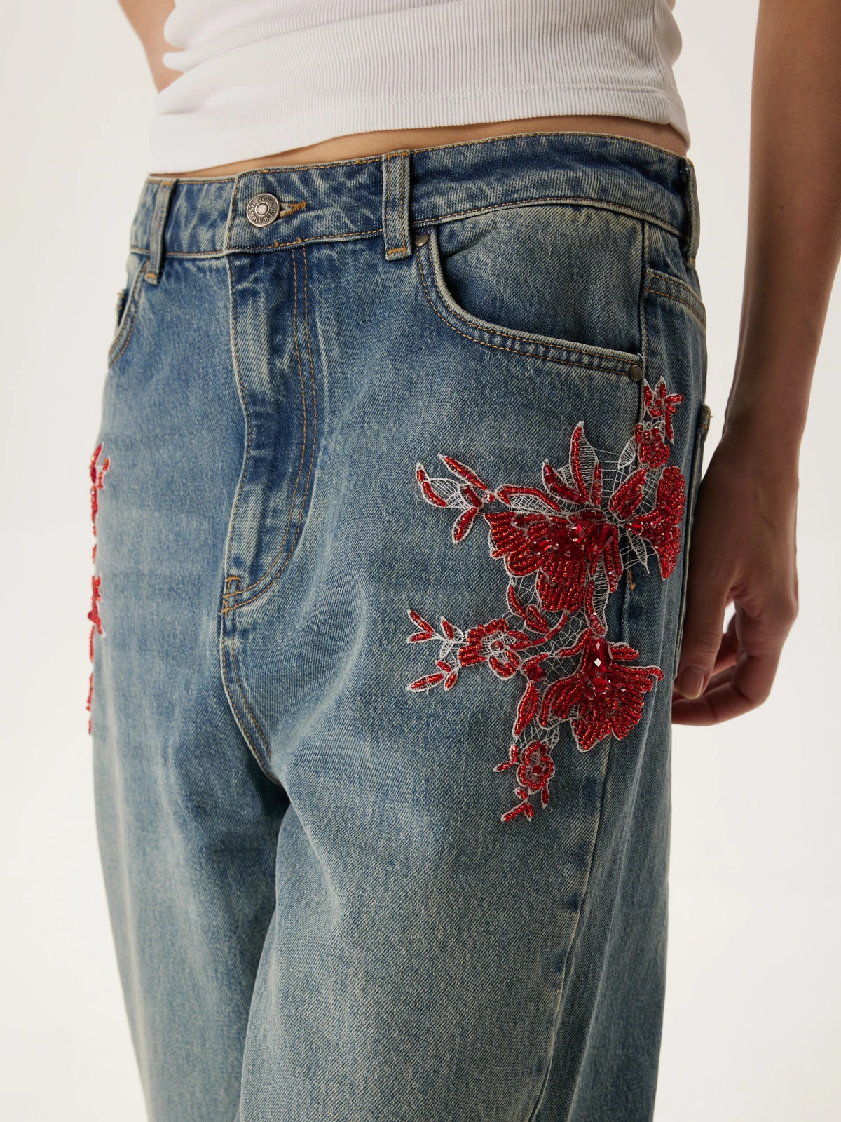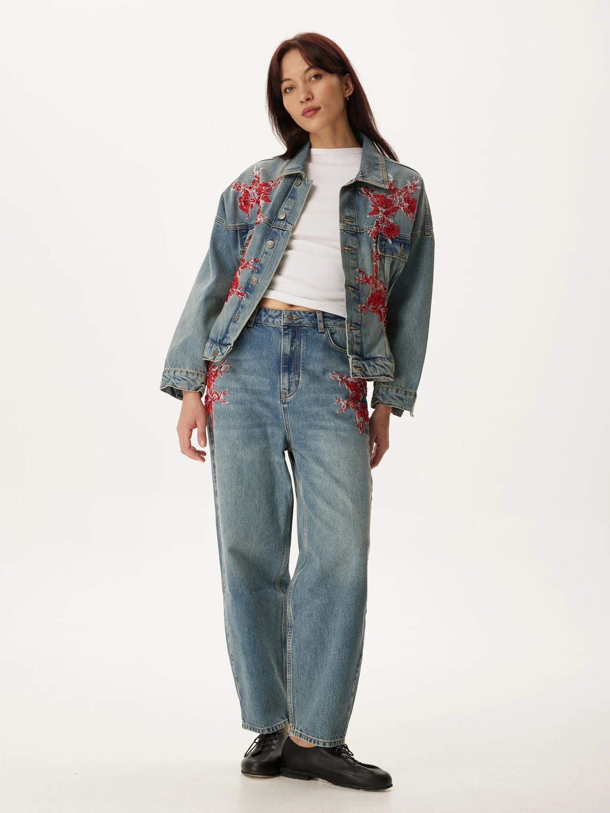 Сверкающий ансамбль из стекляруса и камней, также выполненный нашими мастерами, придает джинсам АУРА поистине царское сияние. Каждый мельчайший элемент, искусно инкрустированный в ткань, ловит свет, играя бликами и отражениями. Вышивка ручной работы, в которую ALRAWASH вкладывает душу и многолетний опыт, гарантирует непревзойденное качество и добавляет каждой паре джинсов АУРА неповторимый характер.
