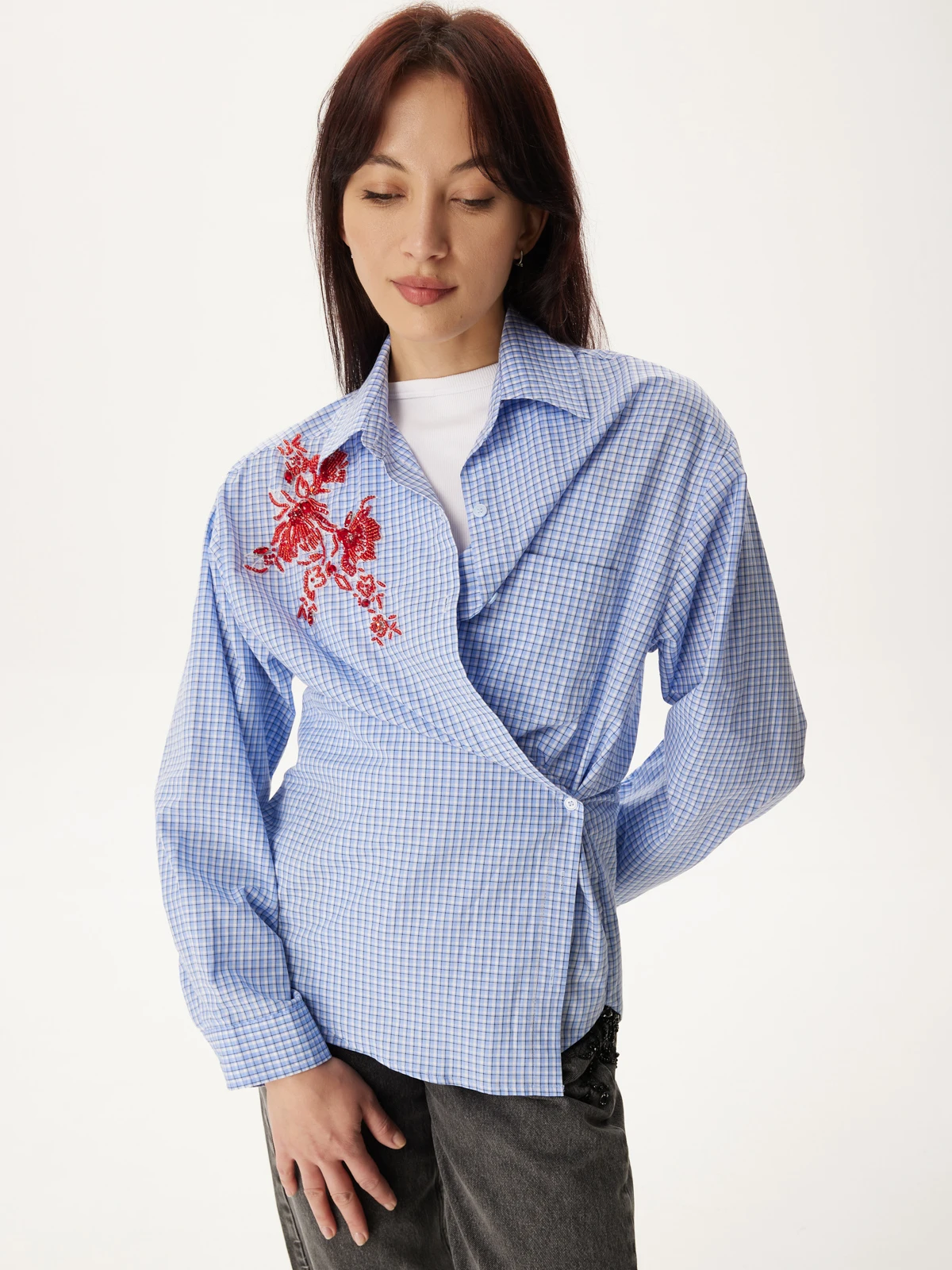 Рубашка АУРА от бренда ALRAWASH – классика встречается с авангардом, создавая неповторимый образ для искушенной модницы. Нежный голубой оттенок в мелкую клетку, служит идеальным фоном для смелых дизайнерских решений. Эта трендовая модель, вдохновленная самыми последними веяниями моды, призвана подчеркнуть вашу индивидуальность и безупречный вкус.