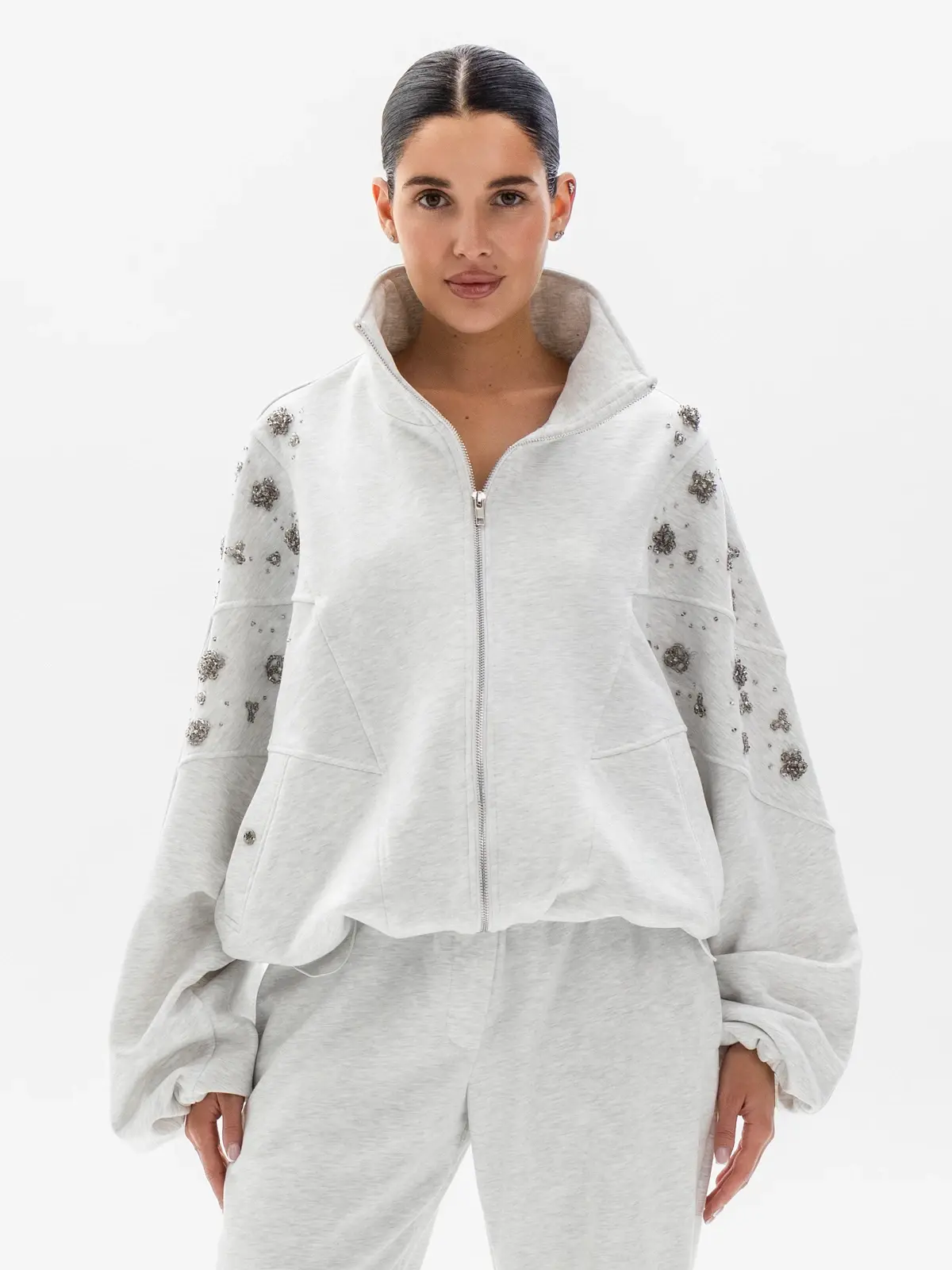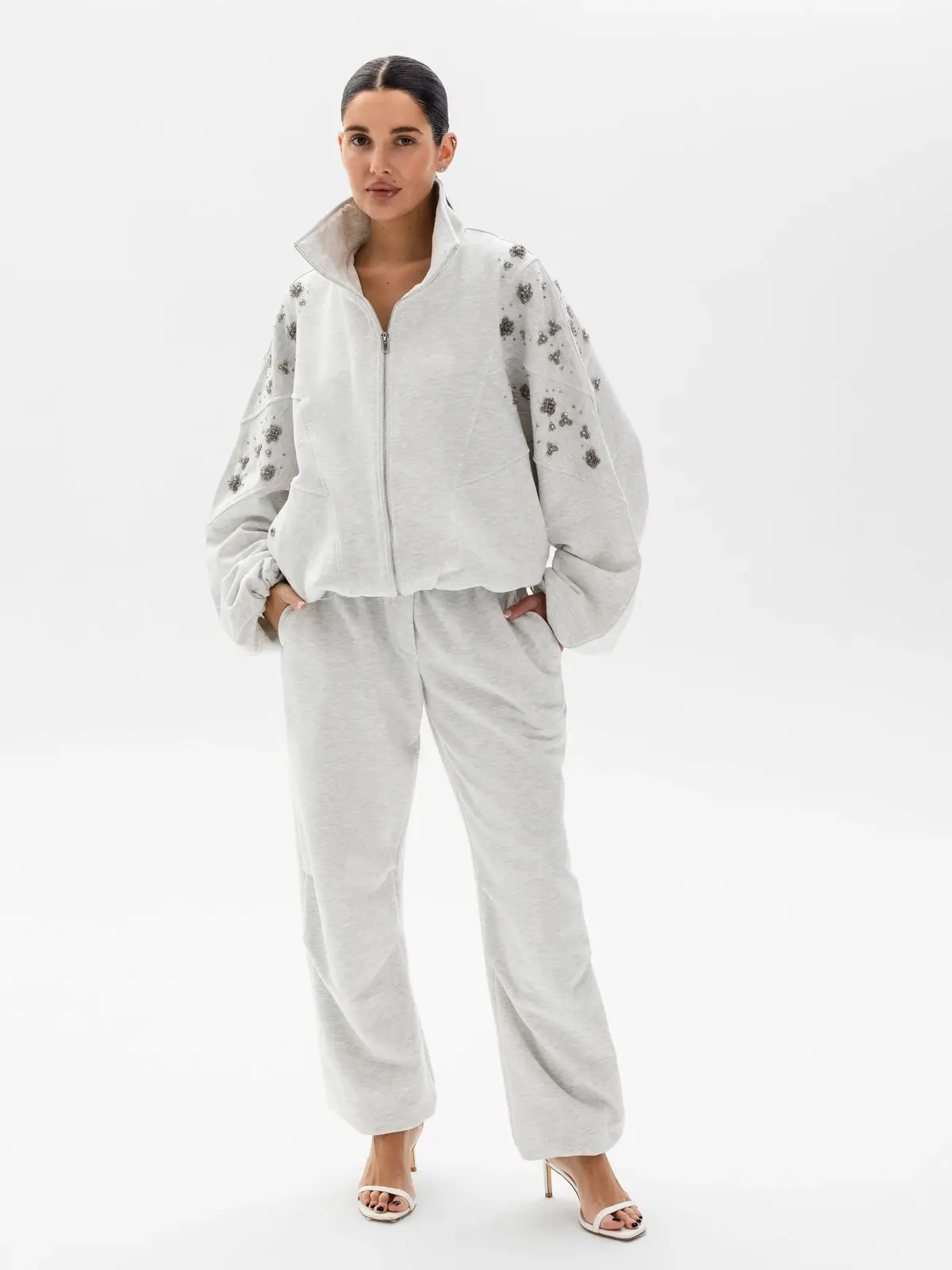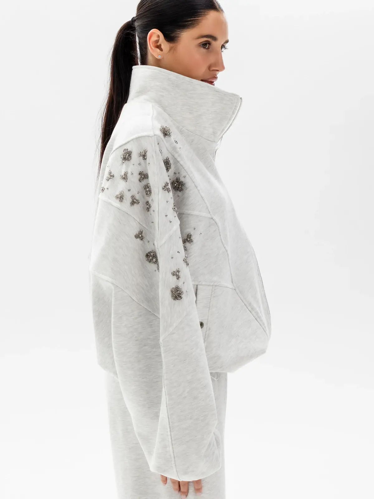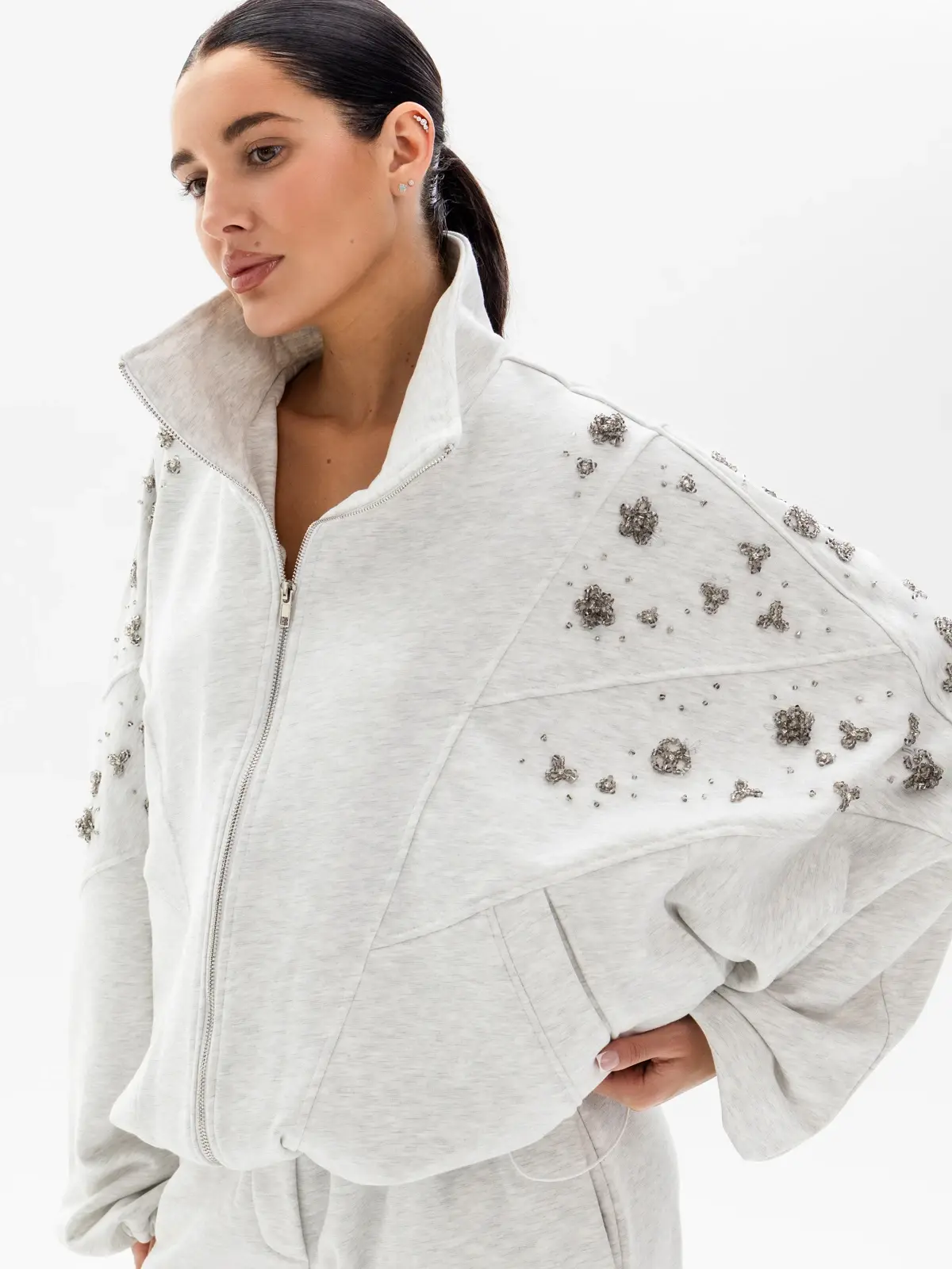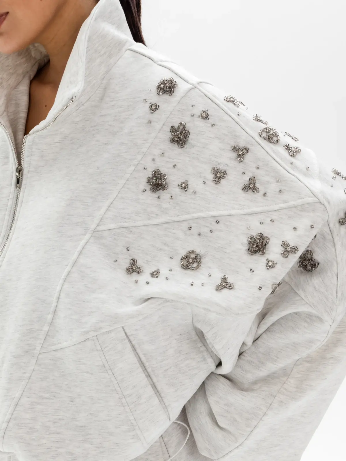 Телогрейка с элементами японского стиля — это стеганая хлопковая куртка, напоминающая кимоно. Удлиненный оверсайз-крой позволяет экспериментировать с многослойностью образа. А по плечам изделия спускаются вышитые бархатные цветы, украшенные бисером, стразами и бусинами из стекла.
